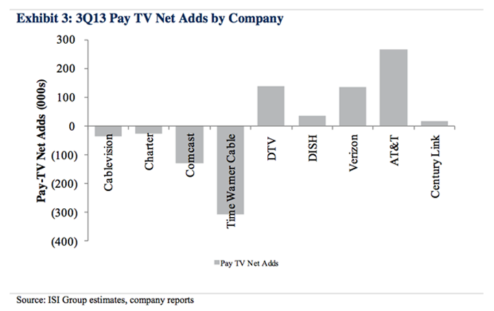 最近,媒體股票分析師克雷格-墨菲特(Craig Moffett)和邁克爾-內(nèi)桑森(Michael Nathanson)均指出,“在過去12個(gè)月中,付費(fèi)電視行業(yè)已跌入了最低谷。”在2013年第三季度,全部主流電視節(jié)目供應(yīng)商總共流失了11.3萬個(gè)用戶。這個(gè)數(shù)字看起來似乎不大,但是要知道,電視行業(yè)統(tǒng)計(jì)的用戶數(shù)字中是已包含了互聯(lián)網(wǎng)用戶的。