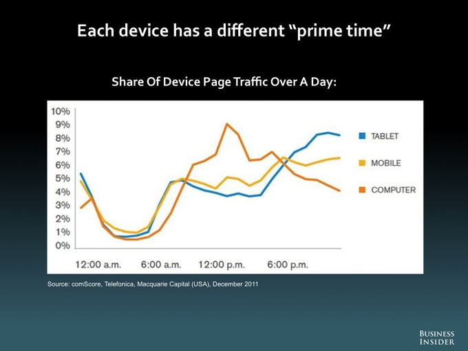 在媒體行業(yè),iPad和其他平板電腦有時(shí)候被稱作“吸血鬼”媒體——它們往往會(huì)夜里出來搶占人們收看電視的時(shí)間。