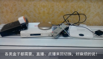 通常人們理解的網(wǎng)絡(luò)機頂盒是市面上單純的網(wǎng)絡(luò)盒子,與家中可接收有線信號的傳統(tǒng)廣電機頂盒完全不同,其擁有海量視頻、游戲等,只要接入互聯(lián)網(wǎng)即可把玩。但是想要通過網(wǎng)絡(luò)盒子接收高畫質(zhì)無緩沖的廣電有線電視信號,只能通過下載安裝第三方直播軟件實現(xiàn),且用戶體驗并不理想,經(jīng)常出現(xiàn)畫面不清晰、卡頓現(xiàn)象。所以就出現(xiàn)了家中盒子排隊排的現(xiàn)象: