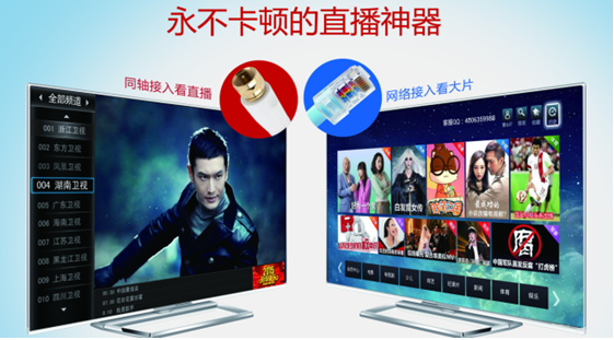 目前兼容廣電有線電視和網(wǎng)絡(luò)電視的融合型智能機(jī)頂盒的代表——泰信盒子已經(jīng)在市場(chǎng)出現(xiàn),其搭載直播電視操作系統(tǒng)DTVOS,既能當(dāng)廣電機(jī)頂盒用,又能當(dāng)網(wǎng)絡(luò)機(jī)頂盒用,還能當(dāng)錄像機(jī)和游戲機(jī)使用,無(wú)卡頓,高畫質(zhì),海量應(yīng)用,全國(guó)通用。此外,泰信盒子將電視變?yōu)榧彝ソ】倒芾碇行暮臀锫?lián)網(wǎng)中心。