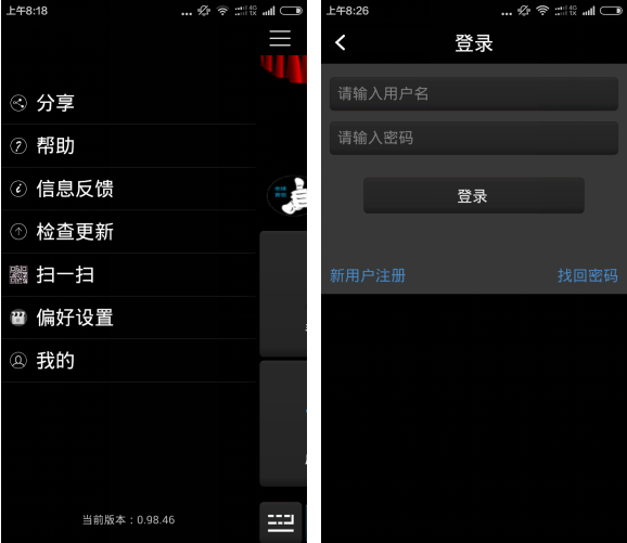 1)登錄界面如下,點(diǎn)擊左上角的菜單圖標(biāo)