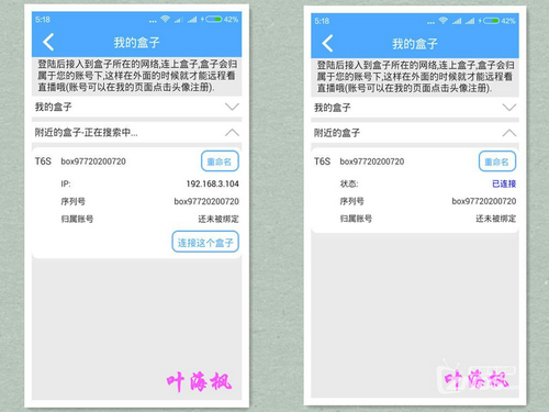 言歸正傳,談一下溫控器功能的實現(xiàn)。首先需要連接盒子到手機(jī)端。