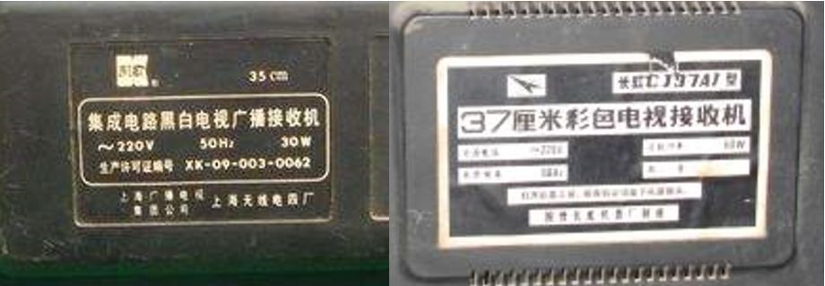 電視機(jī)的全稱是“廣播電視接收機(jī)”。從下面的兩款老式電視機(jī)的后面板標(biāo)貼上可以看出“接收機(jī)”是電視機(jī)的主要功能。
