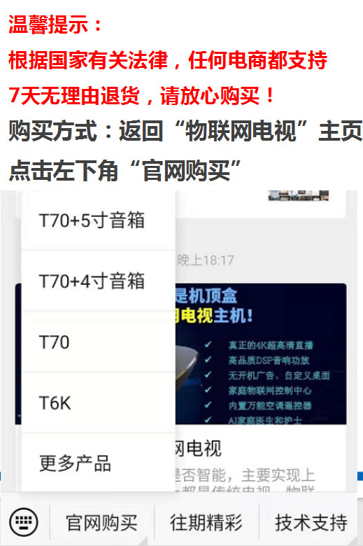 方式二:微信掃碼關注公眾號“物聯網電視”購買。