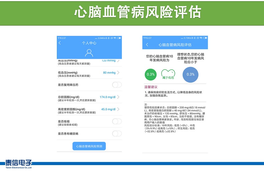 告訴機器人我們的血壓、膽固醇等數據,她能自動記下來,預測心腦血管發病的風險系數,并給出變化趨勢,提前預警。