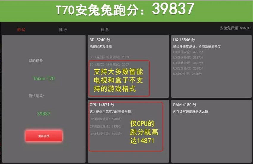 T70的性能超過了絕大數旗艦智能電視和盒子,完全滿足運行高性能應用的要求。