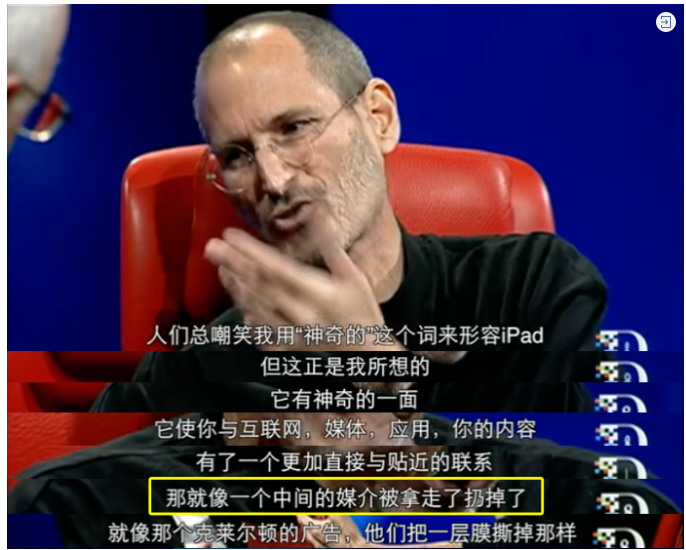 喬布斯在生前最后一次接受采訪,談到重新設計機頂盒時說到“Tear off set up box”,并做出撕報紙的動作。他似乎把機頂盒比喻成了報紙。